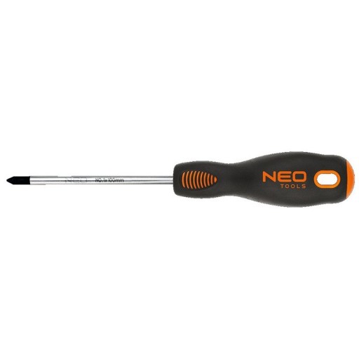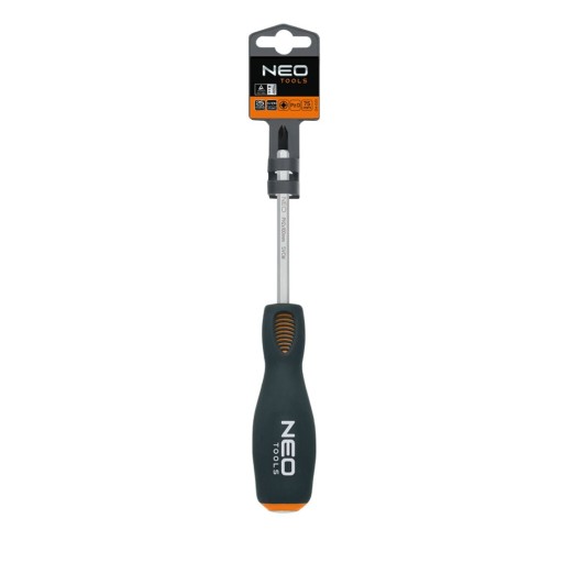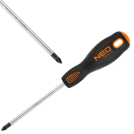 Wkrętak krzyżowy PZ NEO (nr ref. 04-032) o wymiarach PZ1 x 100 mm. Grot wkrętaka wykonany jest z wyjątkowo wytrzymałej stali S2. Końcówka robocza grota została poddana obróbce cieplnej, dzięki czemu uzyskano odpowiednią twardość i odporność na zgięcia 56 HRC. Wkrętak posiada magnetyczną końcówkę. Trójgraniasty kształt uchwytu z wyprofilowanym oparciem dla kciuka zmniejsza obciążenie dłoni podczas pracy i ułatwia uzyskanie optymalnego momentu obrotowego. Dwumateriałowy uchwyt zapobiega ślizganiu się w dłoni, odporny jest na działanie chemikaliów, olejów i smarów. Jakość narzędzia potwierdzona certyfikatem TÜV i 25-letnią gw. producenta. Marka NEO spełnia oczekiwania profesjonalistów.