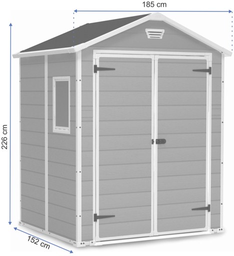 - szerokie podwójne drzwi wejściowe posiadają zamek na opcjonalną kłódkę, co pozwala zabezpieczyć zawartość domku