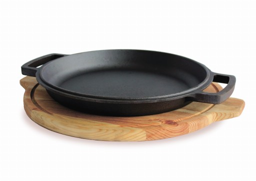 Żeliwna patelnia do serwowania okrągła 280 mm z podstawą.