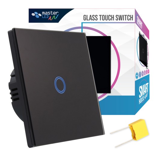 Одинарный СТЕКЛЯННЫЙ ВЫКЛЮЧАТЕЛЬ СВЕТОДИОДНОГО СВЕТА, сенсорный