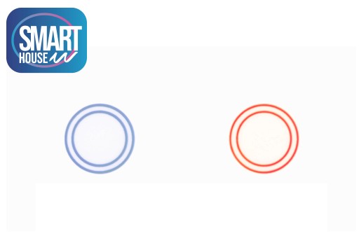 ⏺ Na środku panelu znajdziemy podświetlany dotykowy przycisk który jest widoczny nawet w najciemniejszych pomieszczeniach. Dodatkowo podświetlenie sygnalizuje status światła (niebieski wyłączone, czerwony włączone)
