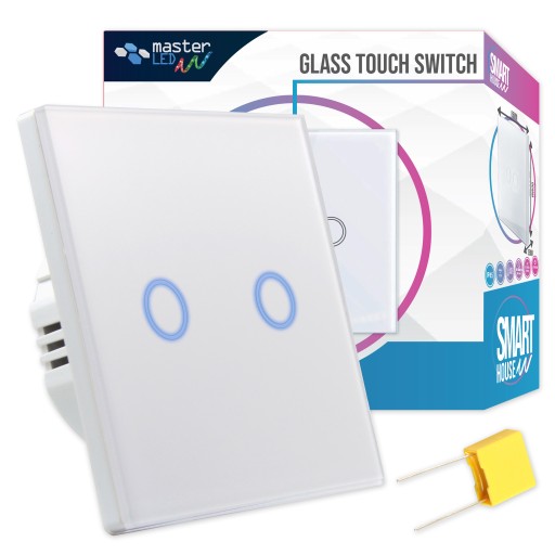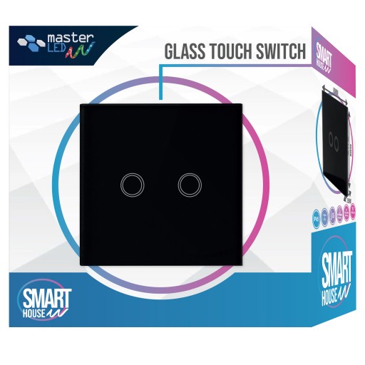 ВЫКЛЮЧАТЕЛЬ СВЕТОДИОДНОГО СВЕТА двойной СТЕКЛЯННЫЙ сенсорный