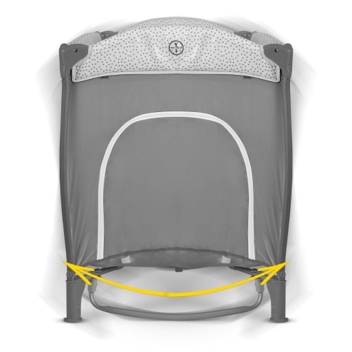 Rozporowa konstrukcja pozwala łatwo rozłożyć łóżeczko do docelowego kształtu i ustabilizować je na sztywno w tej pozycji.