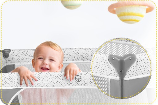Odpinane wejście boczne jest nie do sforsowania przez małe dzieci, dzięki zamkowi wszytemu od zewnętrznej strony. Natomiast starszym już, sprawniejszym i bardziej ruchliwym umożliwia ono samodzielne, wygodne i bezpieczne wchodzenie oraz wychodzenie z łóżeczka – dzięki temu nie będą próbowały wspinać się na górną krawędź.
