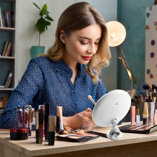 Zastosowane diody LED, rozmieszczone na bokach lustra, gwarantują doskonałą realizację makijażu, bez względu na to, czy pracujesz przy idealnym oświetleniu, czy też w miejscu o ograniczonym świetle.