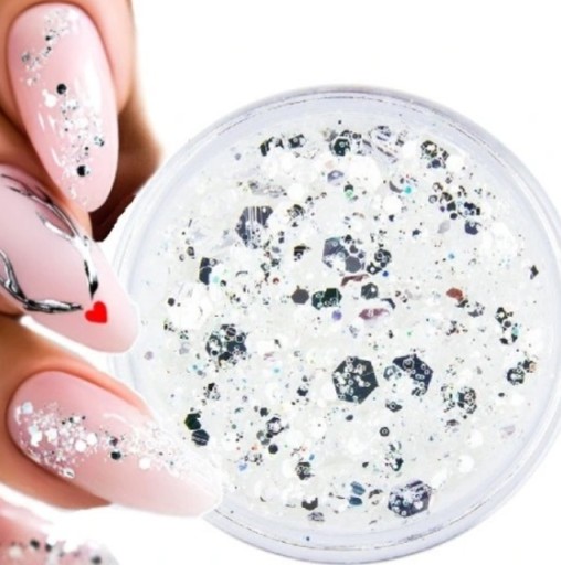 Pokaż siebie w nowej odsłonie. Idealna proporcja zjawiskowego biżuteryjnego pyłku o różnej grubości drobinek odbijających światło niczym lusterko.