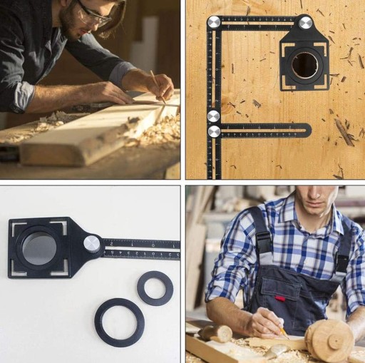 PRZYMIAR ZNACZNIK SZABLON WZORNIK OTWORÓW PŁYTE. 4 REDUKCJE W ROZMIARACH 55 / 45 / 40 / 25 MM + ZNACZNIK KĄTA PROSTEGO