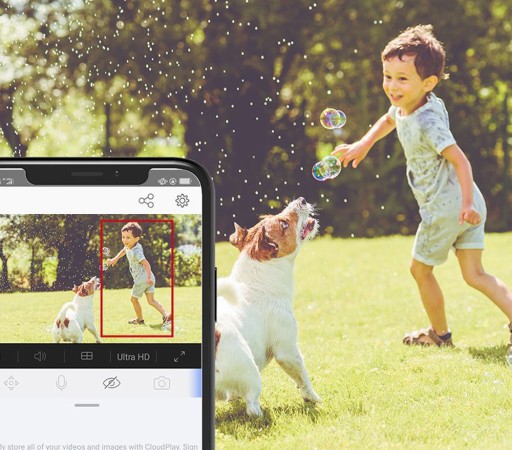 System rozpoznawania osób wspierany przez sztuczną inteligencje, dzięki której fałszywe alarmy powodowane przez większe zwierzęta są zminimalizowane.