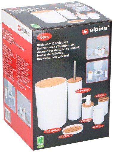 Każdy element zestawu łazienkowego jest wykonany z wysokogatunkowego tworzywa w kolorze białym z dodatkami bambusa