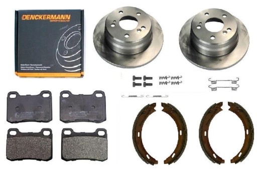 KOMPLET TARCZ HAMULCOWYCH RAZEM Z KLOCKAMI HAMULCOWYMI I SZCZĘKI HAMULCA RĘCZNEGO NA TYŁ FIRMY DENCKERMANN