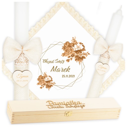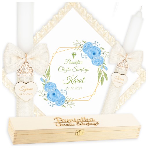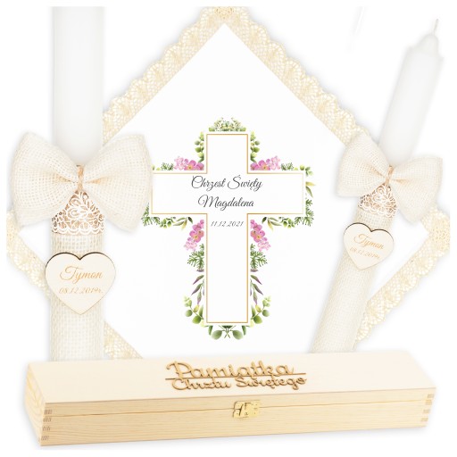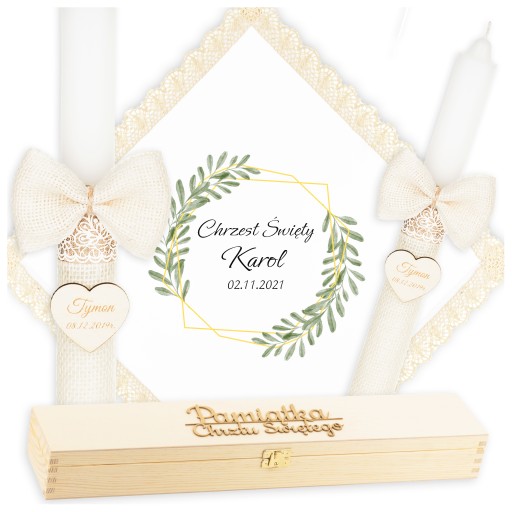 ŚWIECA NA CHRZEST SZATKA I ŚWIECA DO CHRZTU GRAWER PUDEŁKO Pamiątka Chrztu