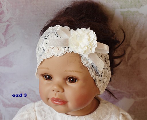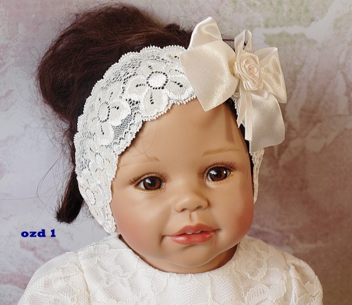 Mamy zaszczyt zaprezentować Państwu śliczną opaseczkę pochodzącą z naszej pracowni. Opaseczka wykonana jest z kremowej elastycznej koronki dlatego bardzo łatwo dopasowuje się do główki dziecka. Jest elegancka i może stanowić uzupełnienie sukienek z naszej kolekcji.