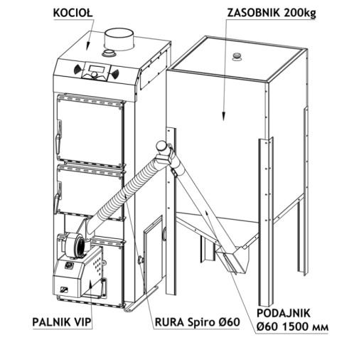 Palnik na pellet Eco-Palnik VIP 20kW samoczyszczący + sterownik palnika + rura spiro + odgięta Ø60 + podajnik roboczy 1,5m