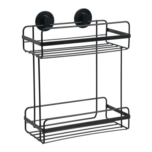 Czarna półka 2p do łazienki oraz kuchni w stylu loft. Samoprzylepna, montowana na bardzo wytrzymałą taśmę dwustronną, która nie niszczy płytek. Dobrze prezentuje się na ścianie. Nie wymaga wiercenia.