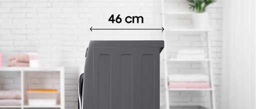 Pralka Samsung jest doskonałą opcją, jeśli chcesz jak najlepiej wykorzystać przestrzeń w Twoim mieszkaniu. Ma małe rozmiary i głębokość jedynie 46 cm.