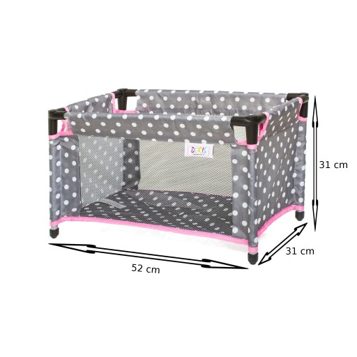 Zabawka może pełnić funkcję kojca lub łóżeczka turystycznego dla lalek. W kilka chwil można je złożyć i praktycznej torbie z uszami zabrać ze sobą w dowolne miejsce.
