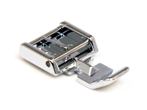 Stopka do wszywania zamków błyskawicznych umożliwia wszycie obustronnie zamka expressowego bez obracania materiału. Dzięki konstrukcji stopki możemy stopkę zamontować przy maszynie do szycia z prawej lub z lewej strony. Za pomocą tej stopki możemy szyć bardzo blisko ząbków zamka, co daje nam w efekcie perfekcyjnie wszyty zamek błyskawiczny.