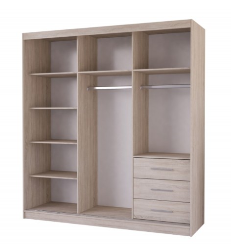 Wenecja to duża i pojemna szafa przesuwna, która pomieści przedmioty codziennego użytku. Wyposażona w półki, trzy szuflady