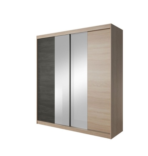 oraz dwa drążki na wieszaki. Szafa posiada system drzwi przesuwnych, który ułatwia użytkowanie i nie zajmuje miejsca.