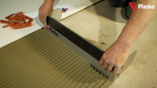 PLASKO - Regulowana paca zębata z osłonami / Urządzenie do szybkiego nakładania kleju na posadzkę.