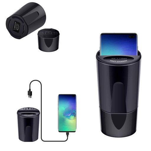 Wygodna ładowarka przewodowa/bezprzewodowa w kształcie kubka, to świetny sposób ładowania urządzenia w trakcie podróży samochodem.
