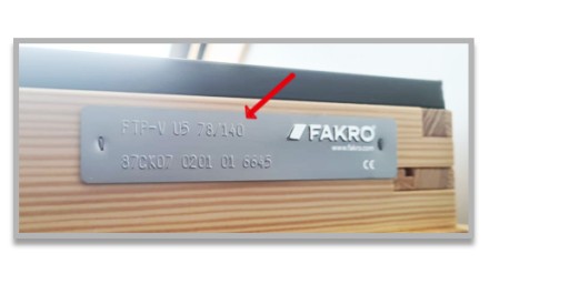 Po lewej stronie ukazujemy Państwu tabliczkę znamionową z wybitym wymiarem okna, roleta pasuje wyłącznie do okien FAKRO.