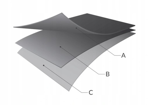 B Druga, podgumowana warstwa odpowiada za zaciemnienie