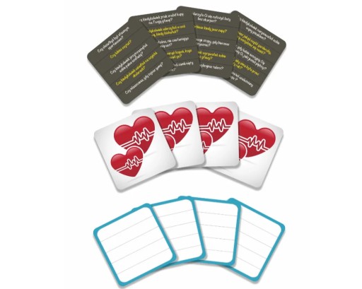 - 64 karty (w tym aż 500 gotowych pytań oraz puste karty do spisania własnych)