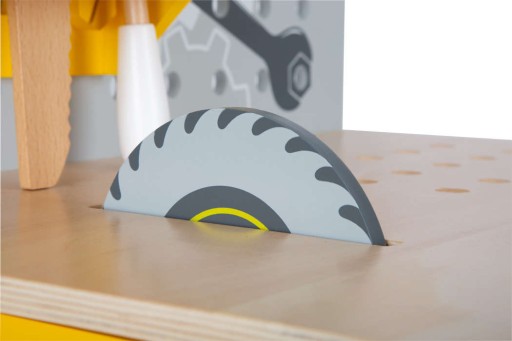 Zestaw przygotowany przez Small Foot zawiera m.in. drewnianą piłę, wkrętarkę, młotek czy poziomicę. Narzędzia wykonane są z drewna wykończonego na gładko, dzięki czemu są bezpieczne. Mają długość ok. 15 cm i dopasowane są do dziecięcej dłoni. Dodatkowe nakrętki, gwoździe i śrubki dostarczą wiele pomysłów na wspaniałą zabawę. Warsztat posiada dodatkowe półeczki, a także większą przestrzeń pod spodem, gdzie pomieszczą się wszystkie elementy.