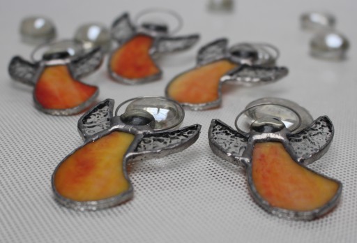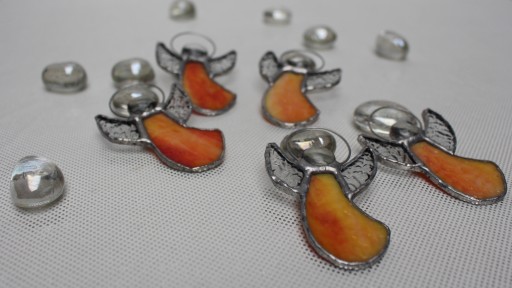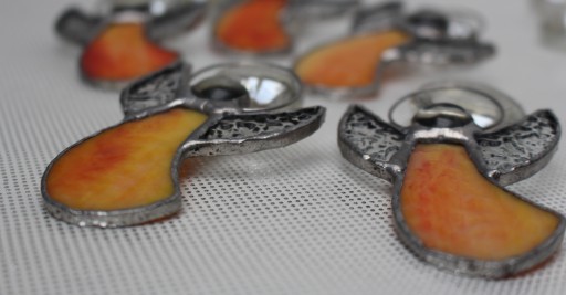 Sukienki aniołków wykonane są z dwukolorowego, karbowanego szkła witrażowego.