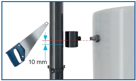Przetnij rurę spustową 10 mm poniżej zaznaczonej linii.