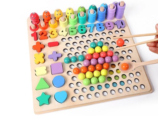 - UCZY – drewniana układanka koraliki bardzo dobrze sprawdzi się również przy nauce liczb, ponadto może okazać się pomocna przy wykonywaniu prostych działań matematycznych. Z jej pomocą dziecko szybko nauczy się rozpoznawać kolory oraz tworzyć figury geometryczne z koralików.