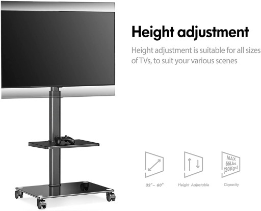 ПОДСТАВКА ДЛЯ ТЕЛЕВИЗОРА НА КОЛЕСАХ 2 ПОЛКИ 60 ДЮЙМОВ 30 КГ