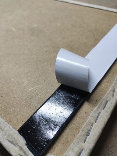 - część rzepa (haczyk) mocowany jest przez nas na zszywki do paneli a druga część (pętelka) posiada klej umożliwiający błyskawiczne przyklejenie do ściany