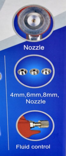 - 3szt wymiennych dysz o średnicy 4,6 i 8 mm.