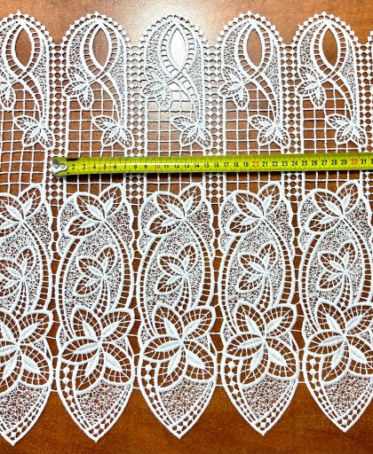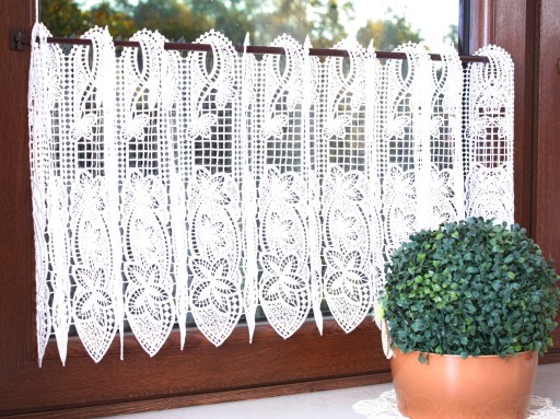 Przedmiotem sprzedaży jest gipiurowa firanka typu zazdrostka o wysokości całkowitej 41 cm . Przepiękny roślinny wzór nada naszemu wnętrzu odrobinę elegancji . Zazdrostka jest dosyć ciężka , mięsista . Firaneczka jest cięta z walka i nie wymaga obszywania , bardzo ważną cechą jest również to że nie trzeba jej prasować, dodatkowa zaletą jest fakt że można taką zazdrostkę powiesić również na żabkach karnisza .
