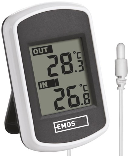 Termometr z pomiarem temperatury wewnątrz i na zewnątrz pomieszczenia