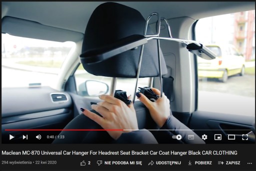 Uniwersalny samochodowy wieszak na ubrania montowany do zagłówka Maclean MC-870