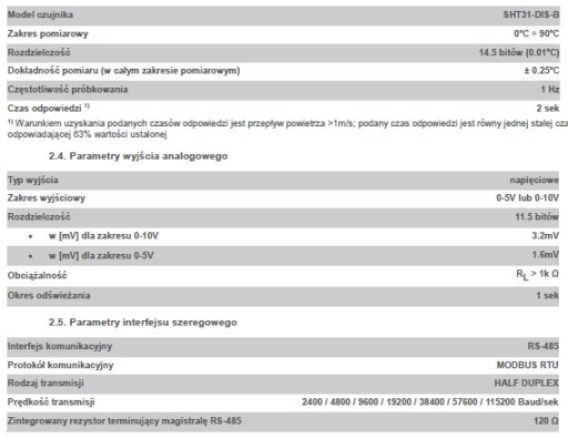 Czujnik wilgotności temperatury RS485 0-5V /0-10V