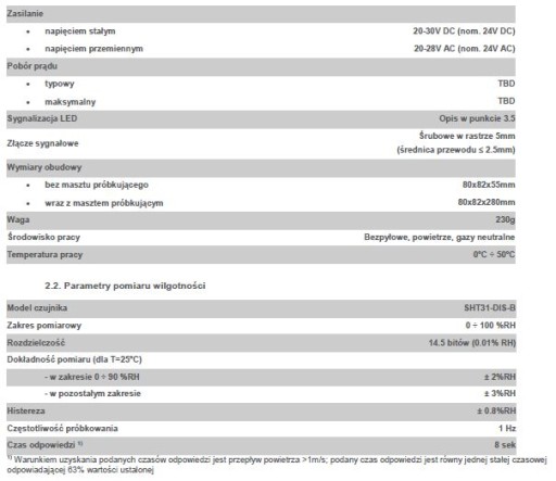 - ■ wyjście analogowe 0-5V lub 0-10V (zakres wybierany sprzętowo) proporcjonalne do wilgotności względnej