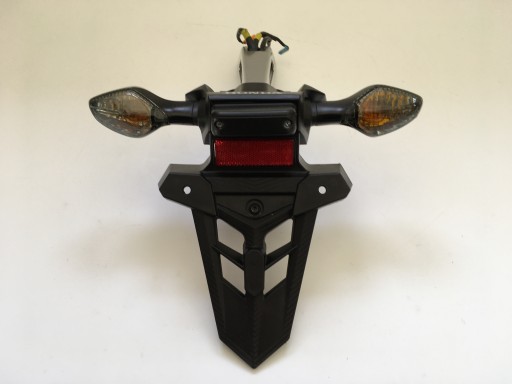 Przedmiot używany, kompletny z kierunkowskazami, podświetleniem tablicy, elementem odblaskowym oraz okablowaniem.