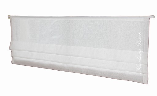 Uszyta z białego woalu - batystu, który swoim splotem przypomina naturalny len, tkanina bardziej zasłaniająca niż woal gładki, dół ozdobiony jest trzema zakładkami, co dodaje elegancji i charakteru.