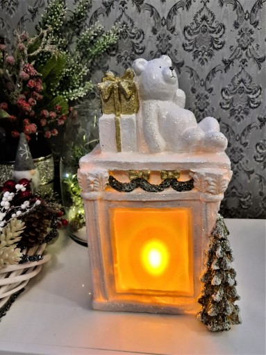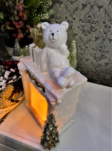 РОЖДЕСТВЕНСКИЙ КАМИН ФИГУРА С МЕДВЕДЕМ - LED