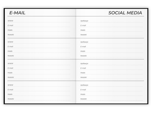 NOTES ORGAZNIER NA HASŁA INTERNETOWE NOTATNIK ZESZYT DOSTĘPY HASŁO PASSWORD