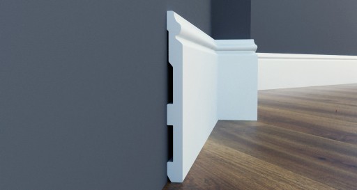 Listwa przypodłogowa dekoracyjna stanowiąca piękne wykończenie podłogi. Wykonana z polimeru HD, pokryta farbą podkładową, przygotowana do malowania. Nadaje się do malowania emalią wodną lub dowolną farbą wodną zmywalną. Może być malowana na dowolny kolor RAL/NCS z użyciem farb wolnych od rozpuszczalników.