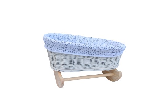 Śliczna i niepowtarzalna kołyska wiklinowa - kolor biały + obszycie szara łączka