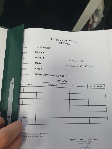 UDT Księga Rewizyjna HDS Żuraw JONSERRED