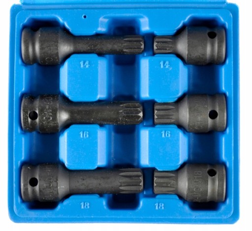 Zestaw kluczy udarowych spline stosowany w samochodach z grupy VAG, m.in VW LT, Transporter, Golf i Sharan oraz tylne zaciski hamulcowe Porsche Cayenne