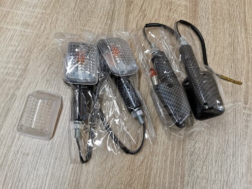Kierunkowskazy uniwersalne - białe klosze, carbonowa obudowa - 4szt + klosz i żarówka