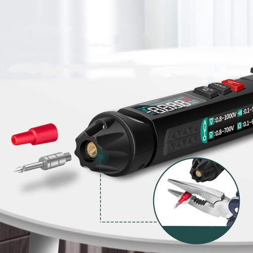 A3008 to kieszonkowy inteligentny multimetr z 3 5/6 cyframi w kształcie długopisu, z prawdziwą wartością RMS. Automatycznie identyfikuje napięcie DC/napięcie AC/rezystancję i mierzy, bez konieczności obracania pokrętła, aby przełączyć, łatwy w obsłudze. Ponadto charakteryzuje się stabilną wydajnością, wysoką precyzją, automatycznym wyłączaniem po 5 minutach bezczynności w celu oszczędzania energii, testem pojemności/diody/więcej, zabezpieczeniem przed przeciążeniem, testem ciągłości, bezdotykowym pomiarem napięcia (NCV), pomiarem zerowej linii na żywo, pomiar kolejności faz itp. Idealne narzędzie do użytku profesjonalnego, fabrycznego, szkolnego, entuzjastycznego lub rodzinnego.